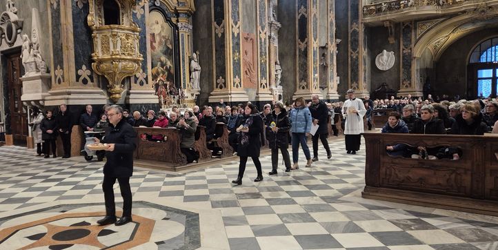 solidarischen Handelns. Die Sammlung des Gottesdienstes war ebenfalls diesem Projekt gewidmet. Die Gaben wurden von Vertreterinnen und Vertretern der Pilgergemeinschaft Südtirols in den Altarraum getragen.