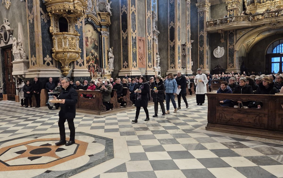 Auch der Gabengang griff das Leitwort „Pilger der Hoffnung“ in besonderer Weise auf. Neben Brot und Wein wurden mehrere symbolische Gaben zum Altar gebracht: ein Stein, der für Lasten, Scheitern und zugleich für Neubeginn stand; ein Pilgerstab als Zeichen des gemeinsamen Unterwegsseins und der Bereitschaft, Verantwortung zu übernehmen; sowie die Jubiläumsfigur „Luce“, die für das Licht der Hoffnung in Zeiten von Unsicherheit und Krise steht. Darüber hinaus wurde eine symbolische Spende für das Caritas-Projekt „Haus der Hoffnung“ dargebracht – als konkreter Ausdruck
