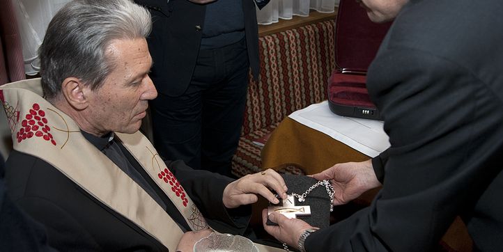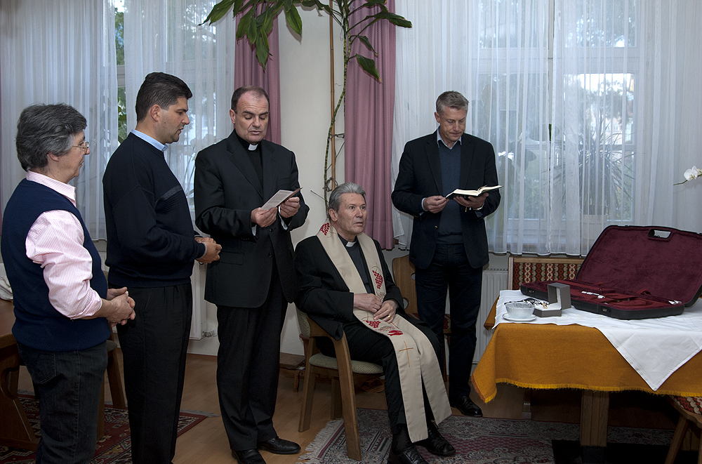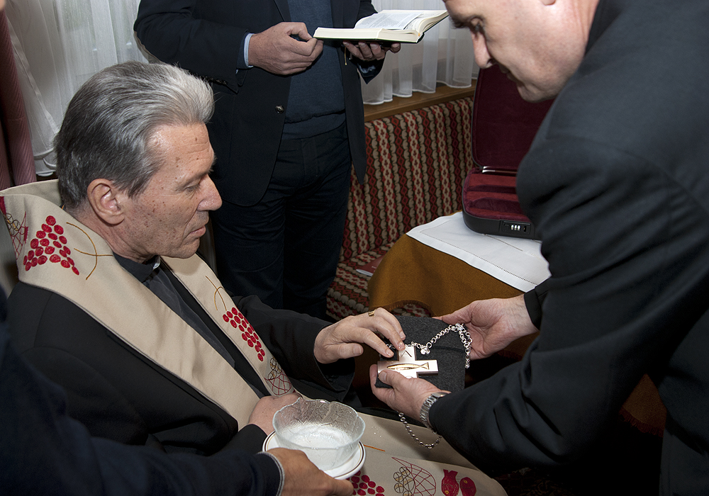 Bischof Karl Golser hat haute, 7. Oktober 2011, die Insignien gesegnet, die Ivo Muser am Sonntag bei seiner Weihe zum Bischof der Diözese Bozen-Brixen überreicht werden.In einer schlichten Feier mit dem Liturgiewissenschaftler P. Ewald Volgger OT, mit Markus Moling und Haushälterin Margaret Vikoler hat Bischof Karl Golser den Hirtenstab, das Brustkreuz und den Bischofsring von Ivo Muser gesegnet. Damit wird einmal mehr die tiefe Verbundenheit der beiden Bischöfe deutlich und Bischof Karl zeigte sich sichtlich erfreut, diesen Dienst für seinen Nachfolger ausüben zu können.