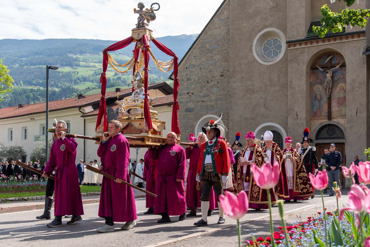 Nach dem Festgottesdienst im Dom, dem der Bischof vorstand, zog die Prozession mit den Reliquien der Diözesanheiligen durch die Brixner Altstadt – begleitet von Musikkapellen, Schützen, Vereinen und Verbänden. Mitgetragen wurden die Reliquienbüsten der Diözesanpatrone Kassian und Vigilius sowie jener der Heiligen Ingenuin, Albuin, Hartmann, Agnes, Ottilia und Christina.