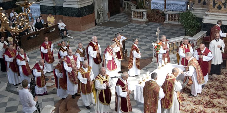 Am heutigen Hochfest der Apostelfürsten Petrus und Paulus hat Bischof Ivo Muser im Dom zu Brixen mit jenen Priestern, die vor siebzig, sechzig, fünfzig, vierzig oder fünfundzwanzig Jahren zu Priestern geweiht wurden, Eucharistie gefeiert.In seiner Predigt ging Bischof Ivo Muser auf jene Frage ein, die Jesus dreimal dem Petrus gestellt hatte: Liebst du mich? Lassen auch wir uns heute am Hochfest der Apostelfürsten Petrus und Paulus ganz persönlich diese Frage stellen. Denn die Tauglichkeit des Petrus für sein Amt besteht darin, dass er sich von Jesus lieben lässt und ihn liebt, so der Bischof, der dazu ermutigte, auf dem Hintergrund der je eigenen Lebens-, Glaubens- und Berufungsgeschichte die Liebe zu Christus zu erneuern. Solange wir ehrlichen Herzens die Liebeserklärung des Petrus an den Herrn zu unserer eigenen machen können, bleiben wir gehalten von seiner Liebe zu uns, so Bischof Muser.