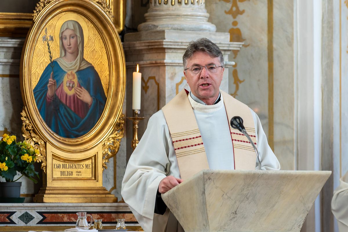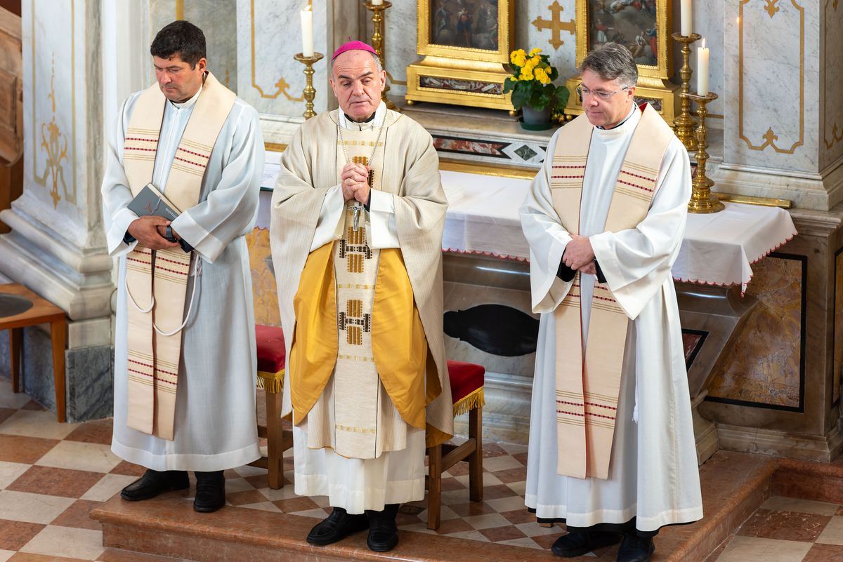 Während Dekan Lintner die Studierenden dazu ermutigte, sich Zeit für das vertiefte Nachdenken zu nehmen, knüpfte Bischof Ivo Muser in seiner Predigt an diese Haltung an und hob die Bedeutung des Schweigens hervor. Er erinnerte daran, wie notwendig in einer „lauten Zeit“ Momente der Stille und des Innehaltens sind. Worte hätten nur dann Gewicht, wenn sie aus der Vertiefung heraus gesprochen würden. Der heilige Bruno, dessen Gedenktag am 6. Oktober gefeiert wird, mahne: „Das Schweigen, um das es ihm geht, trägt uns auf: Sei diskret! Tritt zurück! Gehe verantwortungsvoll, behutsam, ehrfürchtig mit dem Wort um. Deinetwegen. Der Menschen wegen. Gottes wegen.“ Muser machte deutlich, dass Kirche und Studium vom Wort leben, dass dieses Wort aber nur dann Orientierung geben kann, wenn es vom Schweigen, vom Hinhören und vom Reflektieren getragen ist.