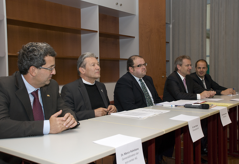 Bischof Karl Golser referierte heute, 30. September 2010, bei den sognannten Vinzentiner Wirtschaftsgesprächen zum Verhältnis zwischen Ökologie und Ökonomie.Das Vinzentinum in Brixen hat bereits mehrmals durch die Vinzentiner Wirtschaftsgespräche aufhorchen lassen. Unter der Leitung von Martin Alber, Wirtschaftslehrer am Vinzentinum, diskutierte heute eine kompetente Runde mit Bischof Karl Golser, Landesrat Michl Laimer, Thomas Ausserhofer, Präsident des Kolllegiums der Bauunternehmer, und Marco Palmitano, Generaldirektor eco-center AG, zum Thema Die Ökologisierung Südtirols: eine Bestandsaufnahme und ein kritischer Ausblick.Bischof Karl Golser referierte zum Verhältnis zwischen Ökologie und Ökonomie. Während die Ökologie sich um den Fortbestand des gemeinsamen Hauses, das die Erde ist, kümmert, müht sich die Ökonomie darum, dass es allen im Haus gut geht. Ökonomie und Ökologie müssten zusammen gehen, sagte Bischof Golser und unterstrich: Wenn es einen Konflikt gibt zwischen der Ökonomie und der Ökologie, so ergeht eindeutig die Priorität für den Fortbestand des Hauses, also für die Ökologie. Damit wurde deutlich, dass eine dauerhafte Entwicklung nur dann möglich ist, wenn von Anfang an die Bereiche der Wirtschaft, der Ökologie, der sozialen Gerechtigkeit sowie der Friedenserhaltung als miteinander verknüpft angesehen werden. Hier muss die internationale Völkergemeinschaft jene politischen Rahmenbedingungen schaffen, damit uns die Erde erhalten bleibt, damit das Leben und das gute Leben, in dessen Dienst ja die Wirtschaft steht, langfristig garantiert werden kann, so der Bischof.In der Diözese Bozen-Brixen sind es vor allem das Institut De Pace Fidei - Institut für Gerechtigkeit, Frieden und Bewahrung der Schöpfung und verschiedene Initiativen rund um den Tag der Schöpfung, die bewusstseinsbildend wirken und wo angeregt wird, beispielhaft durch einen nachhaltigen Lebensstil und durch ökologische Sensibilität zu einem Miteinander von Ökonomie und Ökologie beizutragen.