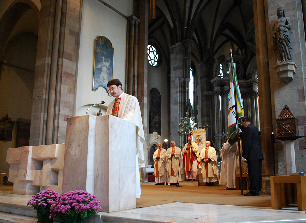 Oggi, 18 novembre 2010, si sono ritrovati numerosi membri dellassociazione dei sacrestani nel Duomo di Bolzano per celebrare una S. Messa insieme al vescovo Karl Golser. Al termine della celebrazione eucaristica si è svolto il convegno dei sacrestani presso la Casa Kolping.Nel corso dellomelia il vescovo Karl Golser ha augurato ai membri dellassociazione dei sacrestani e a tutti i fedeli presenti, di sperimentare nella quotidianità la presenza di Dio e di incontrarlo nella Parola, nei sacramenti e nel prossimo.Al termine della celebrazione eucaristica si è svolto il convegno dei sacrestani presso la Casa Kolping, dove è stato detto che il sacrestano è spesso un punto di unione tra la comunità parrocchiale e il sacerdote. Quando il sacrestano ha un rapporto profondo e vivo con Dio, allora anche le chiese e le cappelle da lui curate, risplendono di una luce che fa sì che il luogo sacro diventi anche per altre persone un luogo dincontro con Dio.