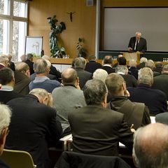 Essere sacerdoti oggi per la pastorale del domani é il titolo dellodierno aggiornamento per sacerdoti, religiosi e diaconi, svoltosi presso lAccademia Cusano a Bressanone. Questi tempi sono caratterizzati da cambiamenti molto decisivi per i sacerdoti, le comunità parrocchiali e per la pastorale in generale. È importante il dialogo concentrato sullesperienza pastorale che i sacerdoti, i religiosi e i diaconi fanno nella loro quotidianità pastorale; un confronto aperto con il vescovo su ciò che nel quotidiano si riesce a portare a termine, su ciò che incoraggia e gratifica, ma anche su quello che provoca smarrimento, delusione e irritazione.Il teologo Alois Gurndin ha guidato e sollecitato la discussione su tematiche riguardanti la pastorale sacramentale, soprattutto sulla questione delle celebrazioni eucaristiche e della Liturgia della Parola.P. Gerwin Komma SJ, guida spirituale del Seminario Maggiore di Bressanone, ha rimarcato la necessità di solidarietà e di collaborazione tra sacerdoti, in comunione con il vescovo. Rinforziamoci e sosteniamoci a vicenda ha detto p. Komma e ha continuato e facciamo in modo, come presbiterio, di contribuire a far crescere le nostre parrocchie, le nostre comunità, le nostre unità pastorali e decanati come luoghi di fraternità e di corresponsabilità, in armonia con il mandato missionario della chiesa universale.