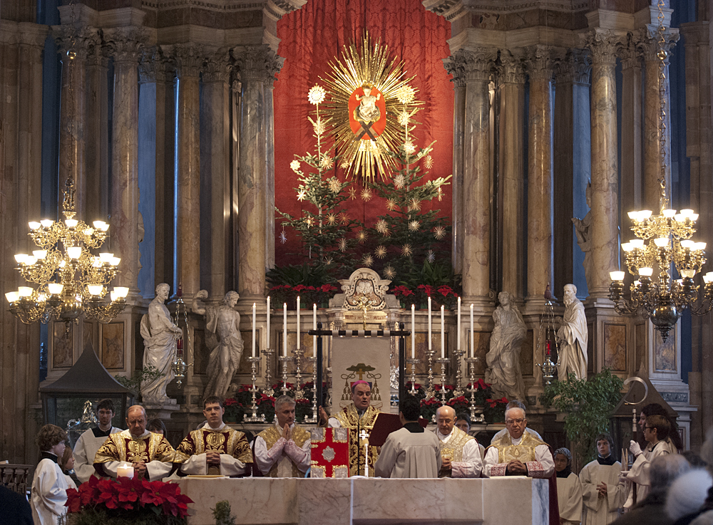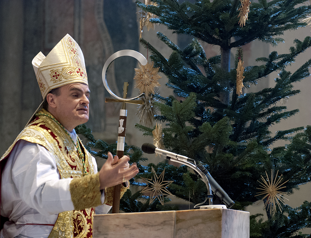 Oggi, 25 dicembre 2011, il vescovo Ivo Muser ha celebrato, alla presenza di moltissimi fedeli, la S. Messa di Natale, nel Duomo di Bolzano.Dio si pone così decisamente dalla nostra parte che è divenuto uno tra noi e come noi; condivide la condizione umana con tutto ciò che questa comporta - dalla nascita in una stalla, alla morte in croce, così si è espresso il vescovo Ivo Muser nella sua omelia, invitando i fedeli a non ridimensionare il Natale ad un bel ricordo, a qualche pio sentimento o alla celebrazione di alcuni giorni di festa. Ha proseguito poi dicendo: Da quando Dio si è fatto carne lo possiamo incontrare in tutto ciò che riguarda luomo. Dio ha a che fare con la nostra storia, con le nostre origini, con la quotidianità del nostro lavoro, dei nostri compiti, delle nostre relazioni. Lo incontriamo ovunque si tratta delluomo e spesso anche del disumano, dove si fatica a credere umanità stessa. E´ proprio qui che lo possiamo trovare: in questa realtà che Egli è nato.Il vescovo Muser ha sottolineato come il Natale sia la festa più vicina alla realtà delluomo questa festa insegna che la realtà di Dio non é qualcosa di straordinario, ma di ordinario, non è qualcosa di eccezionale, ma da ricercare nella quotidianità delluomo. Dio vuole prendere forma, divenire carne, non solo allora nella stalla di Betlemme, ma tra di noi, in noi e attraverso di noi. Accogliere Cristo nella nostra vita o prenderne le distanze, è la decisione che influenzerà la nostra vita e il futuro della Chiesa e della società , così ha detto il vescovo che ha aggiunto: La stalla in cui è nato e la Sua morte in croce ci indicano la via per la nostra vita.