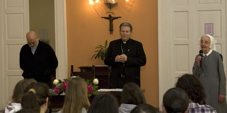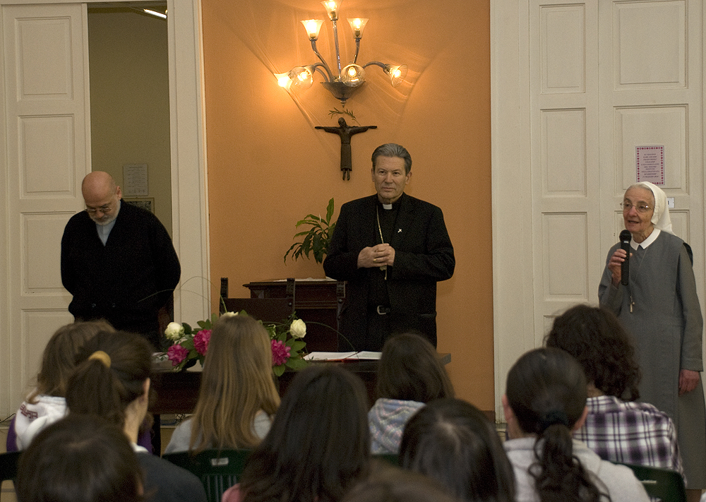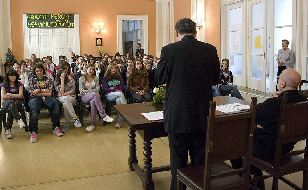 Oggi, 13 maggio 2010, il vescovo diocesano Karl Golser ha visitato lIstituto Marcelline per incontrare bambini e ragazzi, le suore e i responsabili della struttura.Il vescovo Karl Golser ha colto questoccasione dincontro per sottolineare limportanza delleducazione, nonché della formazione cristiana. L'istituto di Cultura e Lingue Marcelline di Bolzano ha al suo interno la Scuola dellInfanzia, la Scuola Primaria e la Scuola secondaria di Primo Grado e il Liceo linguistico Europeo. Esso propone un'educazione ai valori e comportamenti civili, morali e cristiani, fondamentali per la formazione delluomo e del cittadino di domani. È inoltre attento alla centralità della persona e allo sviluppo del plurilinguismo.Listituto cerca di realizzare questo scopo educando gli alunni attraverso una preparazione culturale plurilingue e una formazione a responsabilità, libertà, solidarietà e rispetto.Mons. Golser ha visitato la scuola dellinfanzia e primaria rispondendo alle domande spontanee dei bambini. Incontrando poi gli studenti e le studentesse della scuola secondaria di primo e secondo grado, ha colto loccasione anche per rispondere alle tante domande che i ragazzi gli hanno fatto, raccontando del suo servizio come vescovo diocesano, della sua vocazione, ma anche del valore di tutti di dare testimonianza della propria fede.Per don Gigi Cassaro, Direttore dellUfficio Scuola e Catechesi, il valore di questo incontro sta soprattutto nel fatto che il Vescovo ha avuto modo di accostare una realtà educativa così importante per la nostra Provincia e al contempo ha potuto esprimere a chi ne fa parte la vicinanza della Chiesa alle domande e alle preoccupazioni di alunni, docenti e ente gestore. Per alunni e scolari delle varie età è stata loccasione di vedere il Vescovo da vicino ed apprezzarne anche il tratto umano oltre che culturale, così don Cassaro.