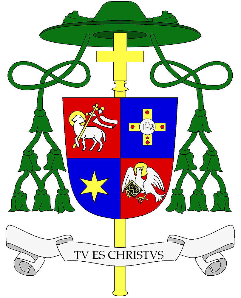 StemmaLo stemma é a due colori: rosso(primo e quarto campo) e blu (secondo e terzo campo).Nel primo campo è rappresentato lo stemma della diocesi di Bolzano-Bressanone: un agnello di colore argento con nimbo aureo che procede verso destra portando una bandiera argentea con una croce rossa.Gli altri campi ( 2,3 e 4)rappresentano lo stemma personale del Vescovo.Il secondo campo presenta una croce aurea pendente, il cui centro è coperto da un disco argenteo con le iniziali IHS, mentre le estremità dei bracci sono coperte da un rubino rotondo. Un rubino ovale sta nel mezzo della parte inferiore. Alla croce greca viene associato un simbolo cristologico che rappresenta lostia con monogramma di Cristo IHS, che si può intendere come Jesus hominum Salvator (Gesù salvatore degli uomini).I rubini rappresentano le cinque piaghe di Gesù. I colori blu e oro nello stemma personale richiamano lo stemma del paese natale, Gais in Pusteria.Nel terzo campo una stella aurea a sei punte, rappresenta Maria (stella mattutina). Poiché la stella è presente anche nello stemma cittadino di Bolzano, essa richiama anche la città dove risiede il Vescovo.Nel quarto campo è rappresentata laquila di S. Giovanni di colore argento e ornata doro, che guarda indietro e in alto e porta nellartiglio destro un libro nero: si tratta del Vangelo e quindi è un simbolo teologico, che rimanda a S. Giovanni evangelista, patrono della parrocchia natale di Gais. Motto Su un nastro bianco si legge il motto in latino: Tu es Christus (Tu sei il Cristo) tratto da Matteo 16, 16 che ricorda la confessione di fede di Pietro in Gesù Cristo, riconosciuto come figlio di Dio Insegne vescovili Dietro lo stemma una croce aurea è sormontata da un cappello prelatizio verde con sei nappe verdi che cadono da entrambe le parti dello stemma. Progetto dello stemma e descrizione: Alexander HohenbühelSu indicazioni del Vescovo eletto Ivo MuserConsulenza: decano del Duomo Ulrich Fistill, Direttore Eduard Scheiber e Karl Gruber