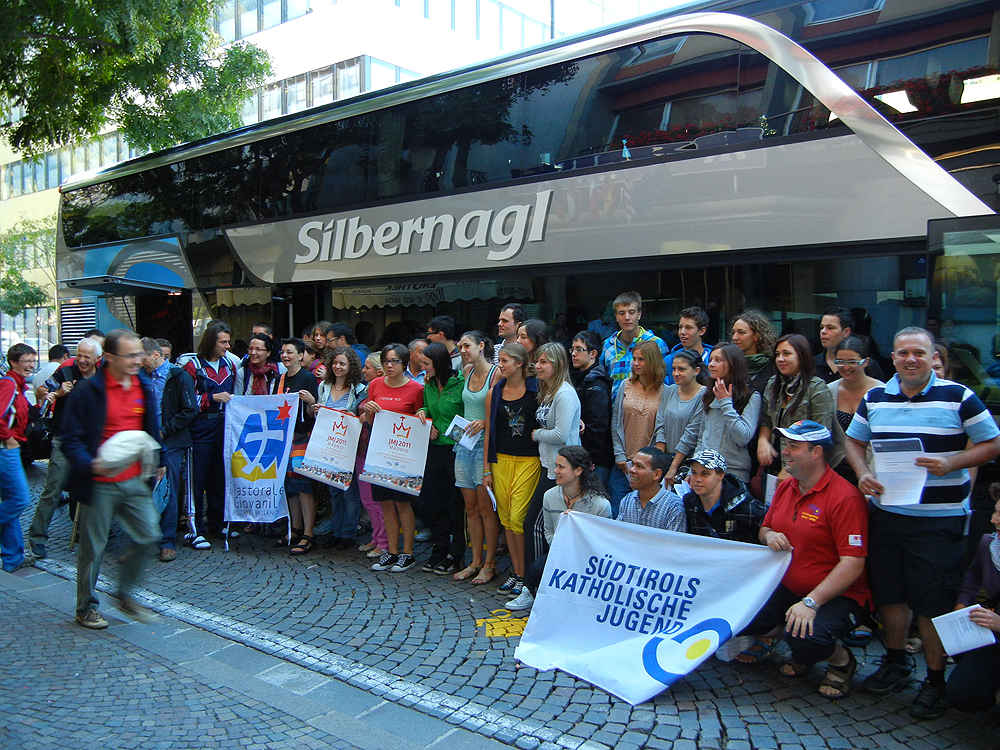 I Vescovi Karl Golser e Ivo Muser hanno scritto un messaggio ai circa 70 giovani della Diocesi di Bolzano-Bressanone che sono partiti questa mattina per la Giornata Mondiale della Gioventù che si terrá a Madrid. Il messaggio è stato letto prima della partenza da don Christoph Schweigl, assistente spirituale dei giovani, ed è stato accolto con grande gioia dai giovani. <o:p></o:p>