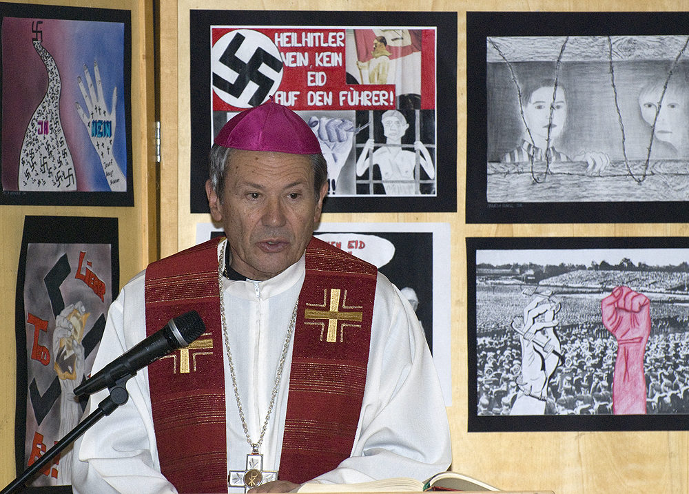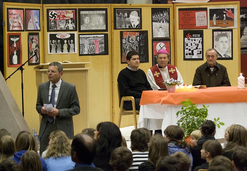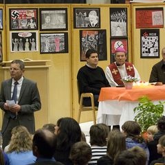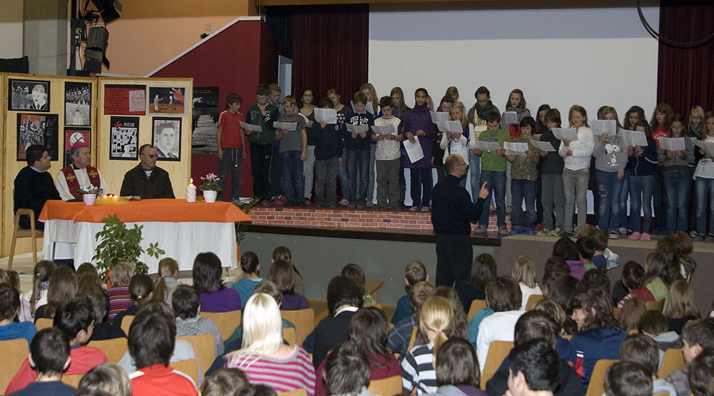 Oggi, 23 novembre 2010, in occasione dellanno dedicato a Josef Mayr-Nusser, il vescovo diocesano Karl Golser ha incontrato gli alunni della Scuola Media Josef Mayr-Nusser di Vandoies. La vostra scuola prende il nome da un vero eroe, così il vescovo.La scelta di appartenere a Gesù, che avviene già con il sacramento del Battesimo, deve essere mantenuta e rinnovata per lintera esistenza questo è stato il nucleo centrale dellomelia del vescovo diocesano Karl Golser in occasione della Liturgia della Parola presso la Scuola Media di Vandoies. Il vescovo, inoltre, ha evidenziato come Josef Mayr-Nusser ha invitato gli altri a rendere testimonianza del Risorto con le parole e le opere.Il direttore Karlheinz Bachmann ha espresso che è una missione di questa scuola, dal 1983 porta il nome di Josef Mayr-Nusser, di far conoscere agli studenti la vita provocatoria di Josef Mayr-Nusser.Durante lanno dedicato a Josef Mayr-Nusser gli studenti della Scuola Media hanno approfondito la vita e lesempio di questa grande personalità. Infatti, per lincontro con il vescovo, gli studenti hanno preparato delle presentazioni Power Point e hanno colto loccasione per porre a mons. Golser alcune domande riguardanti la causa di beatificazione di Josef Mayr-Nusser. Il vescovo Golser si è soffermato tra laltro sul significato della testimonianza di vita e di fede di Josef Mayr, invitando gli studenti a prendere come esempio Josef Mayr-Nusser.