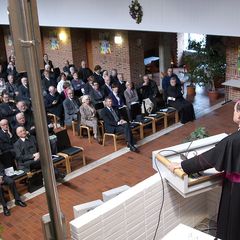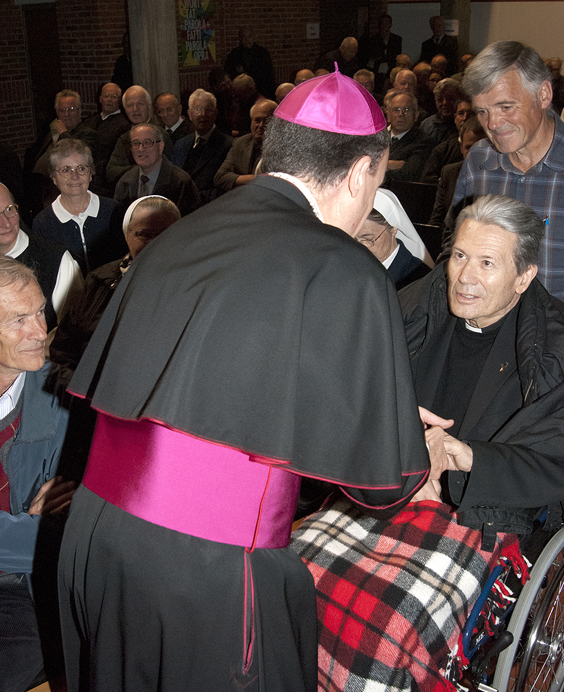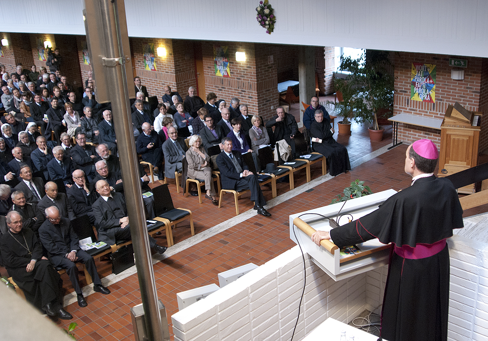 Oggi, 19 ottobre 2011, il Vescovo Ivo Muser ha presentato, in occasione dellaggiornamento del clero e degli operatori pastorali presso lAccademia Cusano di Bressanone, una relazione sul tema: TU ES CHRISTUS La nostra identità. Il nostro compito. Il nostro giogo leggero.Il Vescovo Ivo Muser non ha presentato un piano pastorale dettagliato, ma ha voluto soffermarsi sulla professione di fede cristiana, partendo dal suo motto episcopale Tu es Christus (Tu sei il Cristo). Questa affermazione infatti evidenzia che la fede cristiana non è una dottrina o unistituzione, ma una relazione personale con una persona, con Cristo.Mons. Muser ha spiegato il perché della scelta di questo motto per il suo episcopato e il significato che questo ha per lui. Ha chiesto poi di far proprio questo motto, rendendolo vitale e fruttuoso per poterlo poi diffondere in ogni luogo.Lessenza primordiale del cristianesimo è Gesù di Nazareth, ha detto il Vescovo Muser, parlando dellidentità cristiana, sottolineando che lincontro con questa persona concreta diventa lesperienza fondamentale dei credenti. Ciò che è proprio e caratteristico dellidentità cristiana è considerare Gesù di Nazareth come veramente decisivo, risolutivo, normativo per il rapporto con Dio, con gli uomini, con la società e il creato, ha detto il Vescovo, aggiungendo che lidentità cristiana è quindi unidentità legata ad una Persona. Tale identità non si acquisisce accettando un sistema o una dottrina, ma accogliendo una persona.Rispondendo alla domanda Perché essere cristiani?, mons. Muser ha detto: sono Cristiano per Gesù Cristo, Il Crocifisso e il Risorto. E questa identità cristiana si evince dalla sfida alla sequela a Cristo e dal rapporto personale con Lui.Questanno la due giorni di aggiornamento del clero e degli operatori pastorali non è stata solo occasione di formazione, ma anche momento per dei ringraziamenti ufficiali: don Paul Rainer, don Robert Anhof, don Guido Crepaz e Lorenz Niedermair sono stati premiati per il loro servizio alla Diocesi. Il Vescovo Ivo Muser ha poi personalmente ringraziato per la loro attività e impegno: don Franz Sottara, don Peter Clara, don Alois Wallnöfer, don Oswald Gasser, p. Ferdinand Pratzner SSS, p. Urban Stillhard OSB, p. Bernhard Frei OFMCap, Christine Tschigg Martini, Enrico Grossi e Marino Gandelli.
